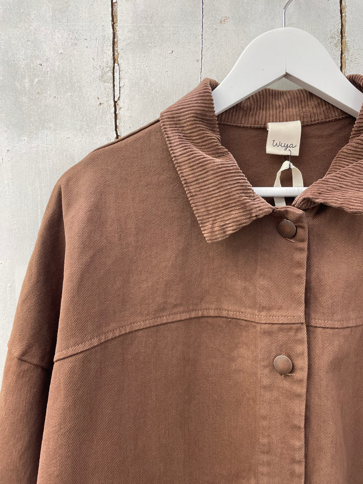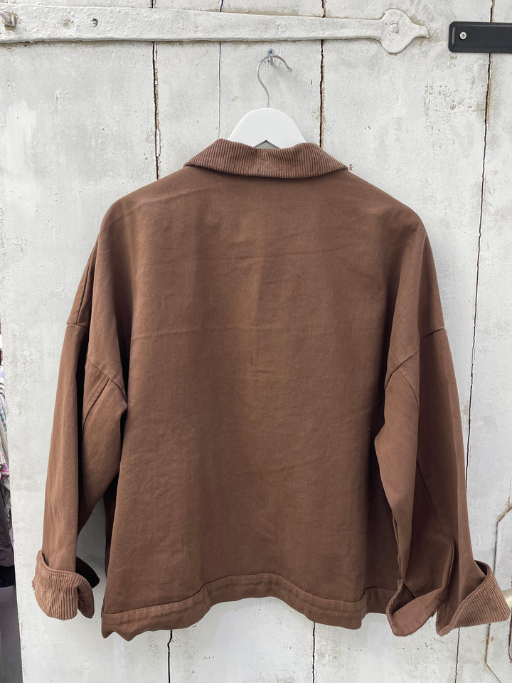 Chocolate brown fall jacket with corduroy collar